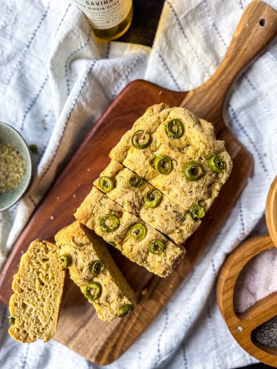 One of the best things about this bread is how versatile it is! Serve with roasted chicken, soups, stews, baked fish, grilled or marinated veggies, a savory salad, as a sandwich, or even just with a cocktail and some snacks for an upscale happy hour.