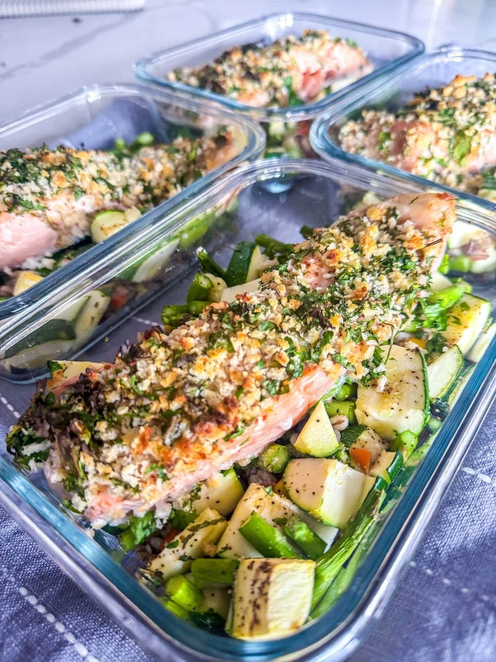 How to Make Mustard & Herb Crusted Salmon Meal Prep Bowls